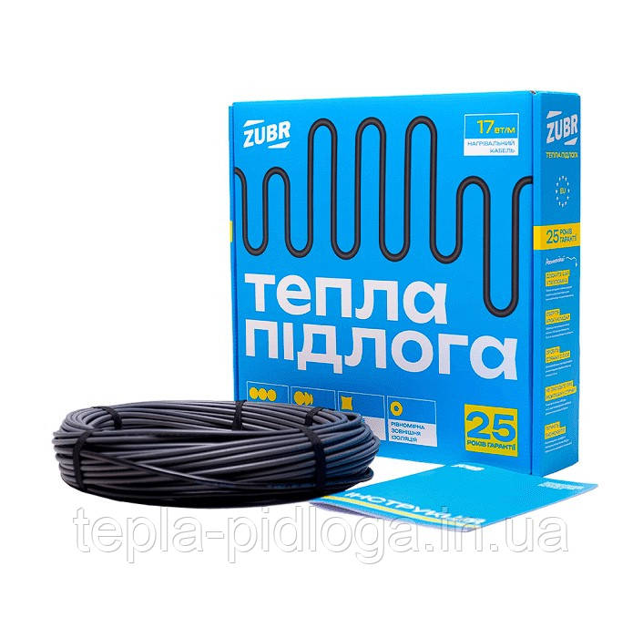 16 М 270 Вт (1.6 - 2.0 м²) Нагрівальний кабель ZUBR 17 Вт/м Тепла підлога електрична